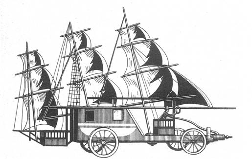 Matematicianul si inginerul constructor de diguri, olandezul Simon Stevinus (1548 -1620), construieste in 1600 o corabie terestra cu vele, care a dat rezultate remarcabile. Vehiculul avea doua catarge pe care erau intinse velele. Un cirmaci schimba directia de deplasare prin modificarea unghiului rotilor din spate. Comanda acestora se realiza prin intermediul unei pirghii lungi, care la rindul ei, actiona un pivot incastrat la mijlocul osiei.