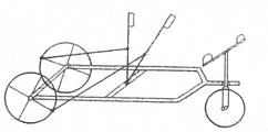 Acest vehicul cerea insa un efort deosebit din partea aceluia care minuia si ca atare acelasi inventator a construit o alta tricicleta, cu doua locuri, in asa fel ca un om sa actioneze mecanismul de deplasare, iar celalalt sa mentina directia si, la nevoie, sa actioneze frina. In plus, a mai adaugat un soi de buzunar la roti, in care se introducea grasime animala pentru ungere.