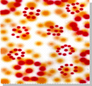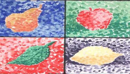 Ø siruri de puncte de aceeasi marime, dar de culori diferite, prin alternanta sau grupare de puncte mai mici in jurul unui punct mai mare;
