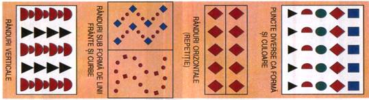 Ø siruri orizontale, verticale, sub forma de linie franta, curba sau sinuoasa sau grupari de puncte;