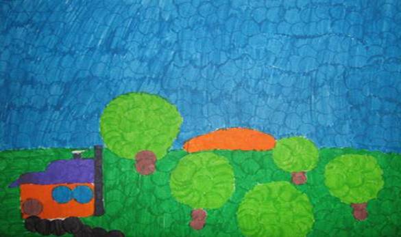 scurgerea aderenta, dirijarea jetului de aer, sfoara colorata, monotipia.