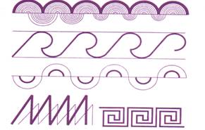 Linia curba a fost folosita in ornamente cosmomorfe, larg raspandite pe tesaturile de casa, ceramica, sculptura in lemn.