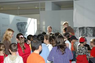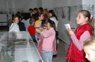 Imagini din timpul vizitarii expozitiei de catre un grup de elevi |