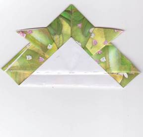 4se va plia coltul de jos in sus,iar de-a lungul celei de-a doua ,se va plia hartia inca o data in sus.