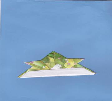 3.se va plia aripa dreapta spre dreapta,iar aripa stanga spre stanga .De-a lungul primei linii ajutatoare (↑)