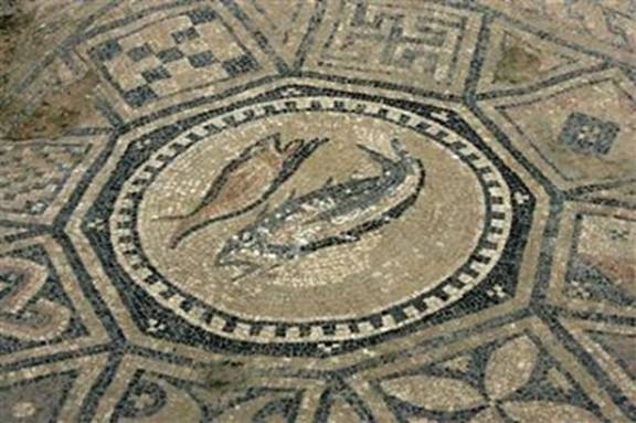 Fig. 1 mozaic simbolizand "apa vie"; secolul IV, Roma