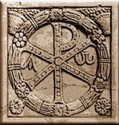 Acest simbol - monograma lui Hristos - aproape ca socheaza prin dinamism. Miscarea dura a dreptelor radiale este invaluita de o miscare in spirala a cercului in care este inscrisa si te trimite la taina Persoanei divino-umane a Mantuitorului Hristos, Dumnezeu si Om.