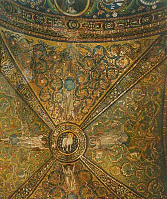 Fig.11 Bunul Pastor in Paradisul terestru, sec.V, Ravenna, Mausoleul Galla Placida