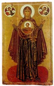 Fig15 Maica Domnului a Intruparii (a Semnului, Znamenie), este printre cele mai venerate icoane ale Maicii Domnului, reprezentata cu mainile ridicate; apartine Maicii Domnului Oranta, cu Hristos la pieptul ei .
