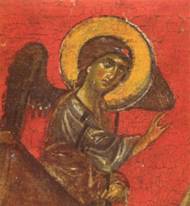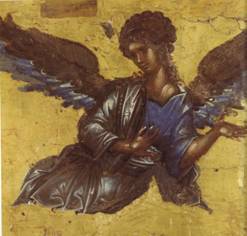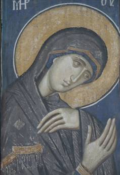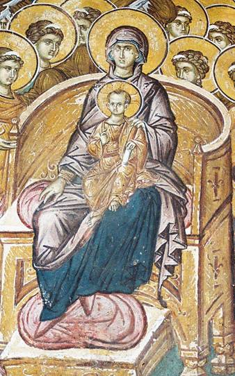 Fig.33 Maica Domului inconjurata de ingeri, fresca Manastirea Decani Serbia, sec. alXIV-lea