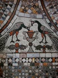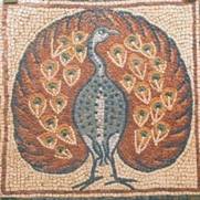 Fig. 45 Porumbel band din potir, Fig.46 Paun, mozaic