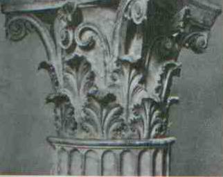 d. Ordinul corinthic, cel mai utilizat in lumea romana, este o varianta modificata a ordinului ionic, capitelul corintic avand echinul de forma unui trunchi de con rasturnat decorat cu motive foliale asezate in doua etaje. Abacul are patru colturi sub care se rasucesc patru volute,insotite de reliefuri figurative animaliere sau antropomorfe din sec al III-lea p. Chr.; intre volute sunt decorate rozete. Mixtura dintre ordinul ionic si cel corintic da nastere, in primul secol imperial, la asa numitul stil compozit (de ex. Arcul lui Titus) iar o alta caracteristica a arhitecturii romane imperiale este alungirea capitelurilor, mai ales a celor corintice.