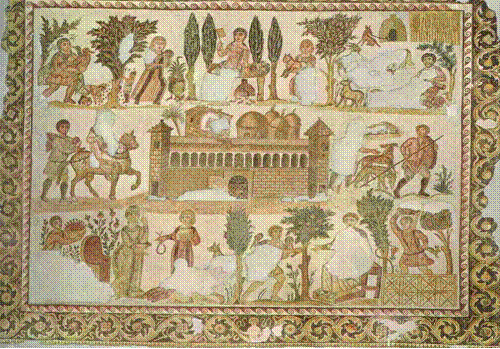 Fig. Mozaic din Cartagina, Viata la tara, sec III-IV.