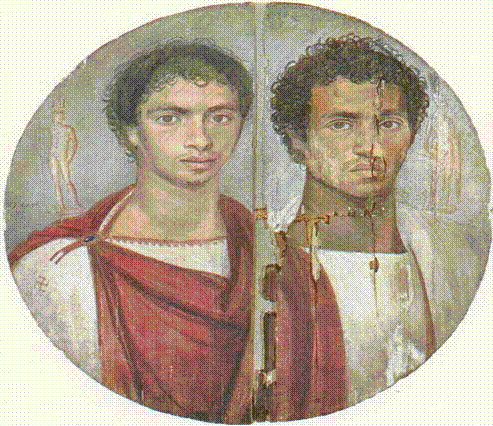 Fig. Pictura pe lemn, tehnica encaustica, "Cei doi frati", sec II p. Chr., Oaza Fayum, Egipt, Muzeul din Cairo