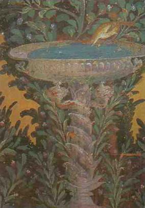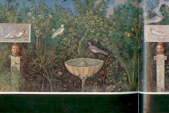 Fig. Gradina cu fantani, pictura murala, Oplontis, sec I p. Chr.