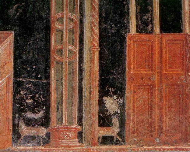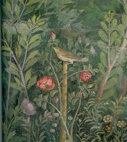 Fig. "Casa cu bratari de aur," camera 32, detaliu pictura naturista, cca 40-62 p. Chr., Pompei