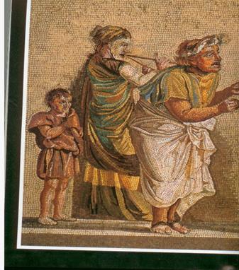 Fig. Leptis Magna, Mozaic compozit, scene din viata cotidiana.