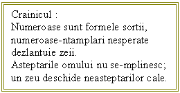 Nu e semn de-ntelepciune sa aduni stiinta multa, nici sa depasesti cu gandul granitele omenesti, caci e scurt ragazul vietii, si semetul ars de ganduri prea inalte nu culege bucuria unei clipe!