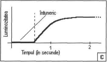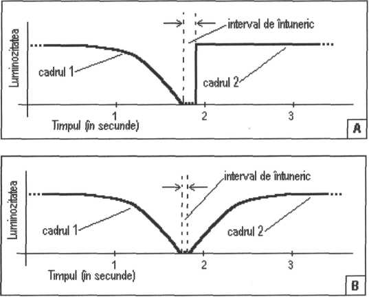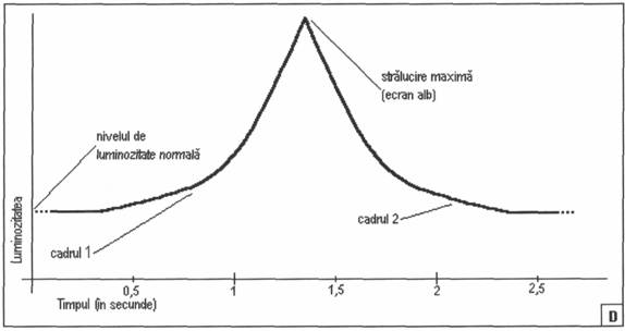 b) fie cadrul 2 se lumineaza treptat (din fondu, în 1-3 secunde, ca mai sus), pâna la luminozitatea normala (desenul B).