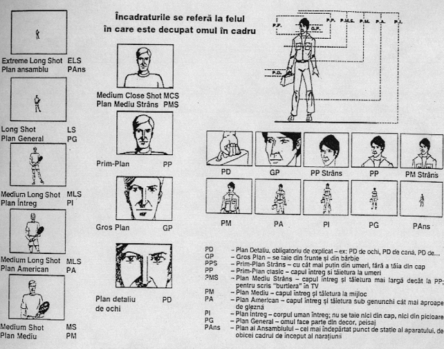 Daca luam ca unitate de referinta ecranul de televizor sau de cinema, încadraturile sau planurile cinematografice se refera la proportiile în care corpul uman este reprezentat pe ecran. Din aceasta perspectiva avem urmatoarele încadraturi: