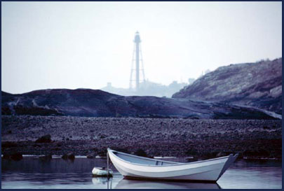 In cele mai reci zile ale anului, "fumul marii' se formeaza deasupra apei. Aici apare o barca care e lovita din spate de lumina sorelui.