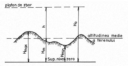 Inaltimea de zbor H0 numita si plafon (fig. 22) se calculeaza pornind de la inaltimea relativa de zbor deasupra terenului h si de la cota medie a terenului Hm.