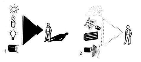 Aproape toate suprafetele din jurul nostru sunt luminate din multe directii. Chiar si acolo unde aparent este o singura sursa, asa cum de exemplu este soarele, mai este si stralucirea cerului, lumina reflectata de pamânt si alte suprafete din apropiere.