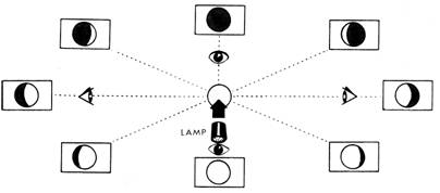 Când se muta lumina din partea laterala mai departe (9-11H), partea sa mai apropiata va fi umbrita progresiv. Daca muti lumina spre 5H, astfel încât fata sa fie departe de aceasta, vei putea observa formele urâte din jurul ochilor si a nasului.