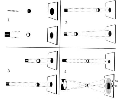 2. Directia luminii reprezinta unghiul pe care îl face lumina cu axa optica. Aici exista urmatoarele posibilitati de a dispune sursele de lumina în raport cu axa optica: