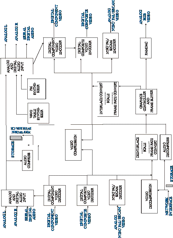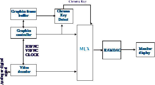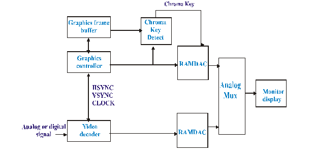 Urmeaza un bloc specializat în introducerea de sigle si text peste semnalul video si partea de refacere a semnalului video sub forma analogica.