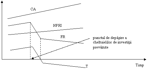 Astfel, in figura de mai jos este reprezentata relatia intre fondul de rulment al trezoreriei ca urmare a unei structuri de finantare neadecvate: in prima faza de dezvoltare cifra de afaceri creste proportional cu necesarul de fond de rulment, in faza a doua, daca proiectul de investitie nu este acoperit de resurse durabile (probabil cheltuielile initiale au fost subevaluate), fondul de rulment se deterioreaza si nu acopera necesarul de fond de rulment al exploatarii. Deci "termenul scurt" finanteaza un mijloc pe "termen lung". Aceasta situatie poate fi acceptata daca ratele dobanzii pe termen scurt sunt avantajoase si daca intreprinderea este sigura ca obtine reinnoirea acestor credite de trezorerie. In cazul contrar, trebuie corectate resursele durabile prin cresterea capitalului, cesionarea activelor imobilizate, etc.
