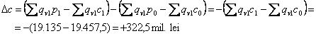 costurile complete unitare au exercitat o influenta pozitiva asupra profitului, determinand cresterea acestuia cu 322,5 mil. lei, situatie determinata de reducerea costurilor produselor ce detin ponderea principala in totalul vanzarilor. Influenta costurilor se apreciaza ca favorabila cu conditia ca sa nu fi fost afectata calitatea produselor vandute. Aceasta situatie pozitiva poate sa fie rezultatul sporirii productivitatii, reducerii consumurilor specifice, sporirii gradului de utilizare a capacitatii de productie etc.;