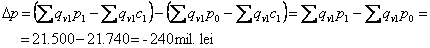 p - preturile medii de vanzare unitare, exclusiv T.V.A.