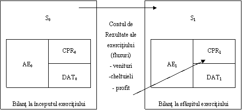Intotdeauna bilantul exprima pozitia financiara, starea patrimoniala la care s-a ajuns la incheierea exercitiului, iar contul de profit si pierdere exprima, in parte, cum s-a ajuns la respectiva stare patrimoniala finala. Acesta evidentiaza fluxurile de venituri si de cheltuieli de gestiune (performanta), de la inceputul pana la sfarsitul exercitiului (figura 2.)