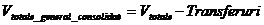 Observatii: Transferurile consolidabile sunt fluxuri care pornesc de la un buget din cadrul sistemului unitar de bugete si ajung la un alt buget din cadrul aceluiasi sistem. La prima vedere, transferurile intre bugete care apar la venituri ar trebuie sa fie aceleasi cu cele care apar la cheltuieli. Diferenta ce se poate observa in aplicatia noastra se datoreaza faptului ca exista sume provenite din credite externe contractare de ministere si alocate unor institutii publice. Aceste sume apar doar la partea de cheltuieli si sunt raportate de ambele entitati. (Ex: credite externe contractate de Ministerul Transporturilor si Gospodariei Drumurilor si alocate Companiei Nationale de Autostrazi si Drumuri Nationale)