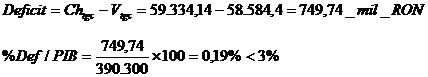 Romania respecta criteriul de convergenta la UE, care prevede ca ponderea deficitului bugetului general consolidat in PIB sa fie mai mica 3%.