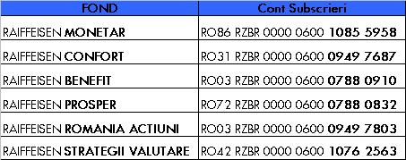 Altele: In cazul in care esti client S.S.I.F. Raiffeisen Capital & Investment S.A., poti opta pentru realizarea de subscrieri de unitati ale fondului prin intermediul contului deschis la societatea de servicii de investitii financiare.