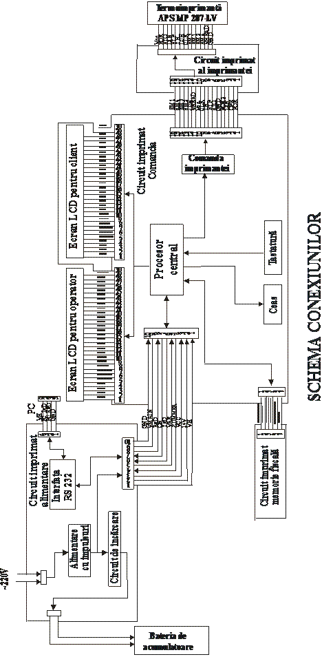 Schema este realizata pe patru circuite imprimate. Schema conexiunilor si amplasarea semnalelor de legatura intre diversele module este urmatoarea: