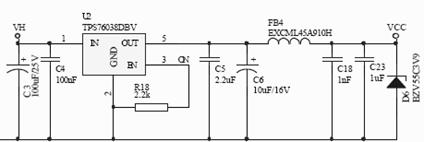 TPS 76038 reprezinta un stabilizator LDO care asigura o tensiune de 3,8V - necesara partii digitale a circuitului.