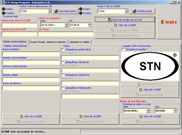 Daca toate operatiile au fost incheiate cu succes si in casa de marcat au fost inregistrati parametrii necesari functionarii sale, atunci se poate iesi din regimul de parametrizare a aparatului (regim de service). Acest lucru se face prin apasarea butonului "Iesire din regimul de service din fereastra de baza a programului de parametrizare. Programul trimite la casa de marcat comanda de iesire din regimul de service, iar dupa primirea ei, aparatul trimite raspuns ca a iesit din regimul de service. Daca totul s-a incheiat cu succes, textul de pe butonul "Iesire din regimul de service se modifica in "Intrare in regim de service si toate butoanele de citire si inregistrare devin inutilizabile.