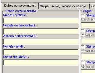 T "Numele comerciantului": "Parametru de utilizare" - numele persoanei impozabile (poate sa fie diferita de "Numele unitatii"). Permite inscrierea unei informatii cu litere si cifre, cu lungimea maxima de 30 caractere. Se poate modifica si dupa fiscalizare.