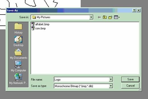 In rubrica Save in: se selecteaza directorul ales pentru a se inregistra in el fisierul cu logotipul; cel mai bine este ca acest director sa fie cel care contine programul de parametrizare a casei de marcat. In rubrica File name: se introduce numele ales de Dvs. pentru fisierul care contine logotipul de ex. "Logo" . In rubrica Save as type: se selecteaza Monochrome Bitmap (*bmp; .*dib). Se apasa butonul "Save". Cu aceasta se incheie crearea fisierului cu logotipul personal.