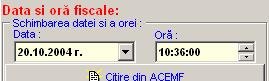 o "Data:" si "Ora:" ale grupului "Intrat in exploatare:", se poate introduce data si ora fiscalizarii casei de marcat,
