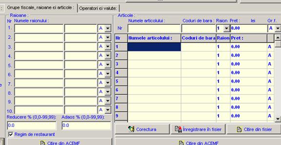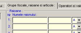 Accesul la grupul de rubrici de citire si inregistrare a informatiei despre raioane si articole, se realizeaza printr-un clic pe "Grupe fiscale, raioane si articole: din fereastra de baza a programului de parametrizare: