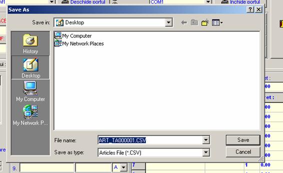 Dupa citirea din aparat a informatiei referitoare la articole, aceasta poate fi inregistrata intr-un fisier, de unde va putea fi citita ulterior. Inregistrarea se realizeaza apasandu-se butonul "Inregistrare in fisier", ca urmare apare urmatoarea caseta de dialog:
