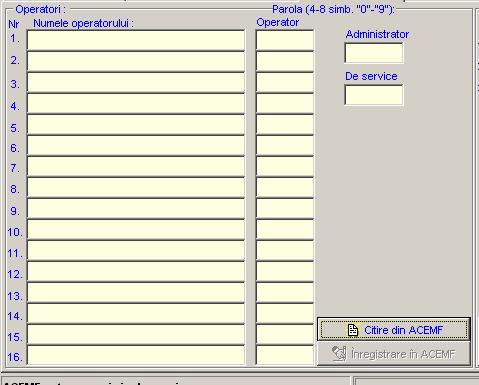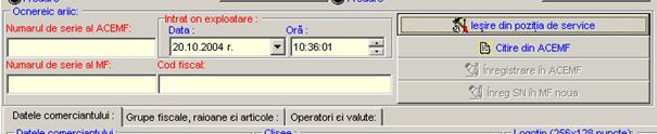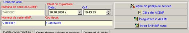 Dupa citirea informatiilor prin apasarea butonului "Citire din ACEMF" , in rubricile "Numarul de serie al ACEMF:" "Numarul de serie al MF:" si "Codul fiscal:" vor fi afisate informatiile respective. Daca aparatul nu este fiscalizat, in rubricile: