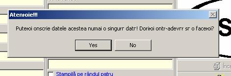 Pentru a le inregistra in aparat, se apasa butonul "Inregistrare in ACEMF", care se afla in dreapta lor, dupa care programul afiseaza urmatorul mesaj: