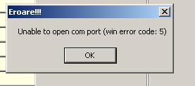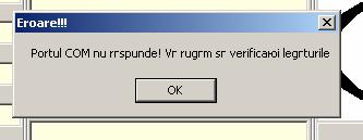 Trebuie sa se selecteze un COM port existent si liber la momentul respectiv.