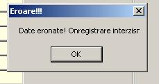 Inainte de inregistrarea setului cotelor de TVA cu care se va lucra, toate rubricile trebuie sa fie completate. In caz contrar, programul va afisa mesaj de date eronate.