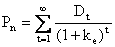 unde: Pn este pretul net incasat in de firma in urma vanzarii, adica Pn = P0(1-F), Dt este seria de dividende platibile catre noii actionari, iar ke este costul noului capital propriu, obtinut din exterior.